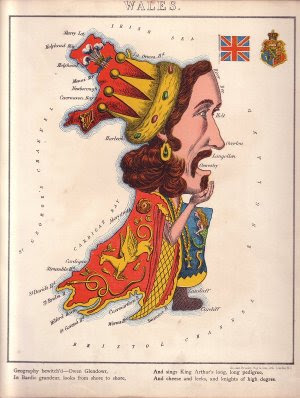 From the Asian Perspective. “The map was actually published in Japan in 1914 and the Japanese script is faithfully - apart from some misspellings - rendered into English with the correct dual names and also title added at the bottom of the print. But the print's title and detailed caricatures across the rest of the world point to the author/illustrator (Tanaka) employing a wider-angled lens, with the focus going far beyond China or Asia. There is a lot to see in the map, not only because it depicts the start of World War I from a satirical standpoint, but because the views being expressed are coming out of Japan/Asia. My favourite parts are the tusked wart-hog of Germany, the semi-sea monster appearance of Britain (perhaps inspired by Robert Dighton's 1795 cartoon map). The China-as-pig figure is seen examining the Manchurian lands of the former Qing Dynasty (ousted in the revolution to be replaced by the early form of the Republic of China) through a magnifying glass.” From: http://bibliodyssey.blogspot.com/2008/05/asia-on-world.html